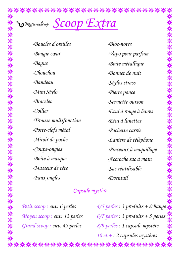 -Obtiens des capsules mystères pour les Scoops extras. tirage au sort d’un Produit premium mystère.